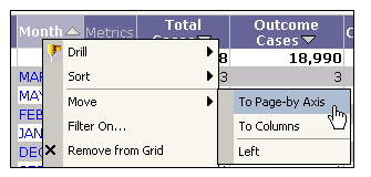 - If the Page-By line does not appear above the grid, right-click on the column header and select Move > To Page-by Axis.