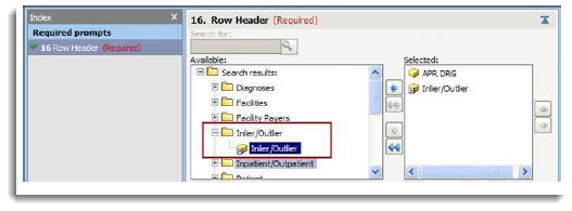 The Inlier/Outlier attribute in the Row Header prompt on the Set Up Analysis tab.