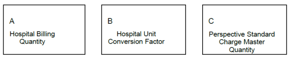 - Hospital Billing Quantity is converted to Perspective Standard Charge Master Quantity.