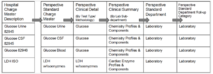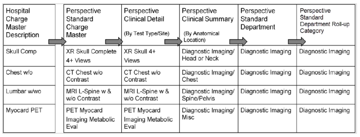 - Then, the Perspective Standard Charge Master line items are successively mapped to each higher Comparative Reporting Level (Hierarchy).