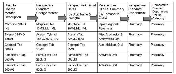 - First, each hospital’s pharmaceuticals are mapped to the Perspective Standard Charge Master.