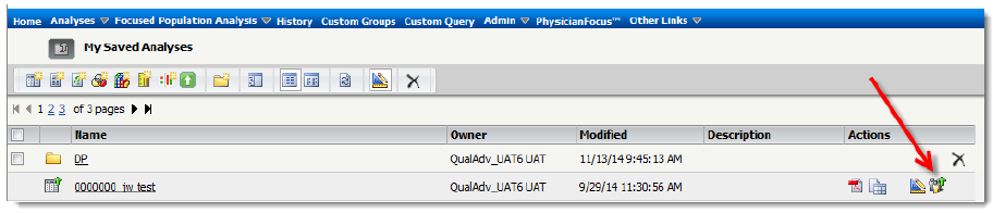 - Select My Saved Analysis from the Analyses menu. The My Saved Analyses page displays.