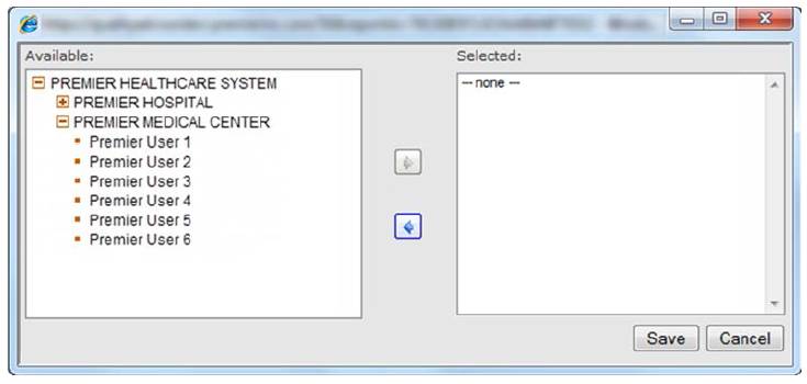 Notes: Click the right-facing arrow to add users; click the left-facing arrow to remove them.
