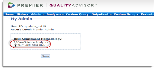 - If 3M™ APR DRG Risk is selected, the 3M™ version of the risk adjusted analyses will be available.