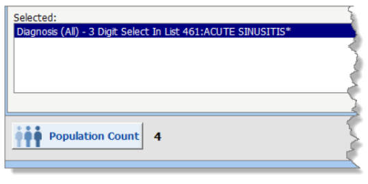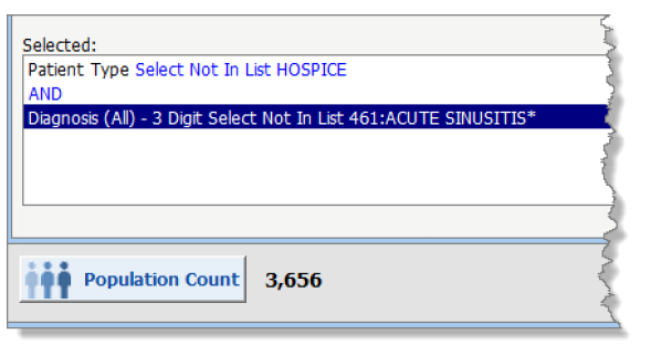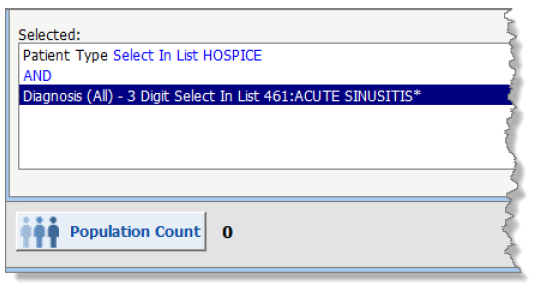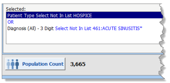 In this example, you have filtered the population by all patients who had a patient type of Hospice OR had a diagnosis of Acute Sinusitis.