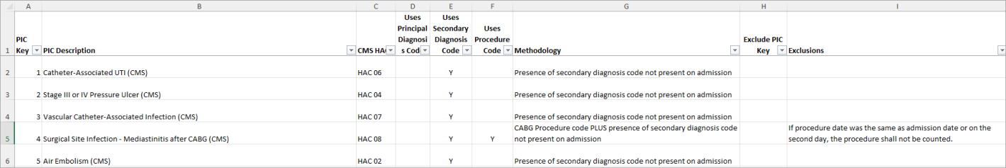 The new CMS HAC and PIC Methodology document allows you to see both the CMS HAC and PIC in one document, whether it uses Primary and/or secondary Diagnosis codes or Procedure codes, and the associated Methodology and Exclusions.