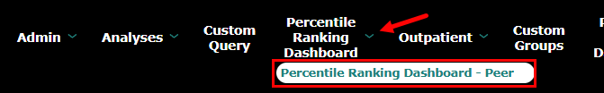 The dashboard is accessed via a link added to the QualityAdvisor toolbar. Click on the dashboard link in the toolbar and then click on the "Percentile Ranking Dashboard - Peer" link