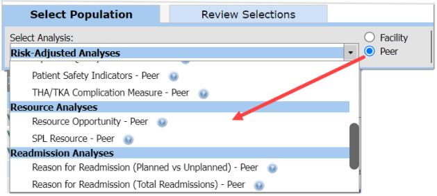 The new Resource Opportunity analysis is added to the Resource Analyses section on the Standard Analyses for Peer menu.
