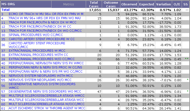 - Expected - The Expected value is the expected complication rate. This value is always calculated with CareScience Analytics Standard Practice.