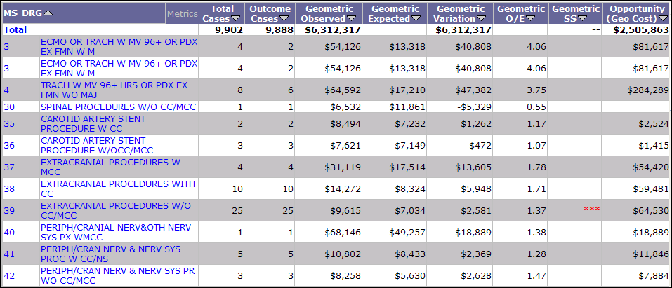 - Opportunity (Geo Cost) - The calculation of the Variation multiplied by Cost/Case Outcome Cases. There must be at least one cost opportunity dollar for a value to display. Cost opportunities are rounded to the nearest dollar.