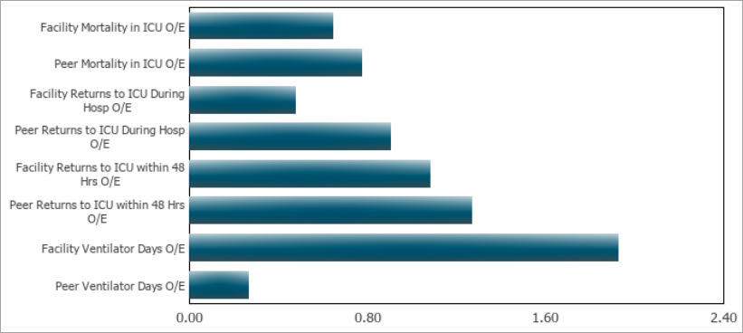 Columns: Facility Mortality in ICU (Den), Facility Mortality in ICU Observed, Facility Mortality in ICU O/E, Peer Mortality in ICU O/E