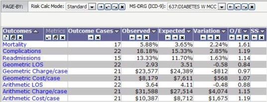 - Expected - The expected value for the Outcome Cases, calculated using the CareScience Analytics risk-adjustment methodology.